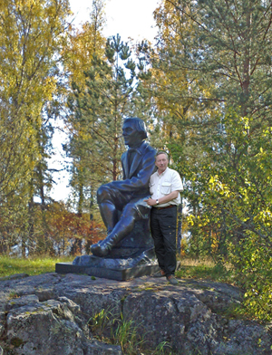 Elias Lönnrot, ensimmäinen sauvakävelijä![]() Elias Lönnrotin patsas Sammatissa Paikkarin torpan läheisyydessä. ![]() Nelisensataa Lönnrotin uudissanaa kuuluu yhä Suomen kirjakielen keskeiseen sanastoon. Tuhannen tavallisimman suomen sanan joukossa Lönnrotin sanoja on kymmenen. Lönnrot oli erityisen kiinnostunut kasveista, osaltaan niiden lääkeominaisuuksien takia. Hänen mielestään kasvioppi oli uskonnon jälkeen tärkein oppiaine koulussa. Flora Fennica –kirjassaan, joka on ensimmäinen suomenkielinen kasvitieteellinen teos, Lönnrot esitti lähes 1300 suomenkielistä kasvitieteellistä termiä ja määritteli ne tarkasti. Tällaisia ovat esimerkiksi kasvin osien nimet hede, emi, palho ja ponsi sekä lehtiä kuvailevat adjektiivit puikea, suikea, sepivä, johteinen ja nyhälaitainen. Lönnrot matkusti runonkeruumatkoillaan tuhansia kilometrejä, useimmiten jalan. Häntä voisi pitää täydellä syyllä sauvakävelyn pioneerina. Paljasjalkaista kävelijää esittää Suomalaisen Kirjallisuuden Seuran esimies Johan Gabriel Linsénin pojan piirtämä pilakuva, jonka hän teki isänsä ohjeiden mukaan. ”Yksi mies pelasti juoksentelemalla asiamme”, lukee kuvan alla latinaksi. Miksi tämä kyseenalainen kunnianosoitus? Sitä sopii ihmetellä. ![]() |