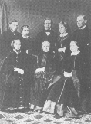 ![]() Eero Salmelaisen sisarukset. Salmelainen itse äärimmäisenä oikealla. Istumassa vasemmalta lukien : Charlotte Bergstedt o.s. Rudbäck (1818-87), Maria Sofia Rudbäck o.s. Chrohns (1796-1886) ja Sofia Forss o.s. Rudbäck (1824-1910). Seisomassa vasemmalta lukien: Anders Johan (Janne) Rudbäck ja hänen 1. puolisonsa Ida Maria o.s. Gummerus (1833-61), Alexander Rudbäck (1821-78) ja hänen puolisonsa Edla Johanna (Jenny) o.s. Nylander (1833-91) Kuopion Kulttuurihistoriallisen museon valokuvakokoelma. |