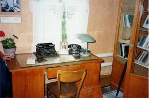 ![]() Runoilija näyttää kirjoittaneen Moskva-merkkisellä kirjoituskoneella, joka muistuttaa vahvasti Remingtonin Model 5:ttä. |
